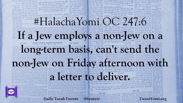#HalachaYomi OC 247:6 If a Jew employs a non-Jew on a long-term basis, can’t send the non-Jew on Friday afternoon with a letter to deliver.