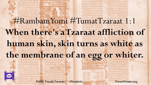#RambamYomi #TumatTzaraat 1:1 When there’s a Tzaraat affliction of human skin, skin turns as white as the membrane of an egg or whiter.