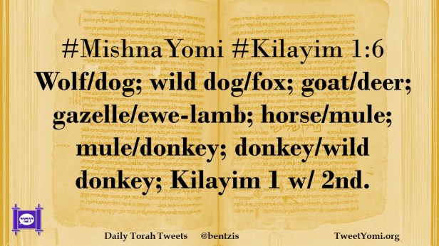 #MishnaYomi #Kilayim 1:6 Wolf/dog; wild dog/fox; goat/deer; gazelle/ewe-lamb; horse/mule; mule/donkey; donkey/wild donkey; Kilayim 1 w/ 2nd.