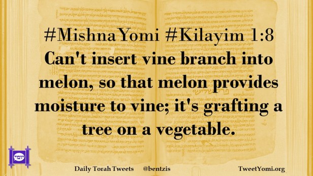 #MishnaYomi #Kilayim 1:8 Can’t insert vine branch into melon, so that melon provides moisture to vine; it’s grafting a tree on a vegetable.