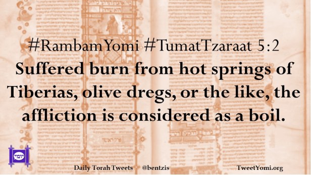 #RambamYomi #TumatTzaraat 5:2 Suffered burn from hot springs of Tiberias, olive dregs, or the like, the affliction is considered as a boil.