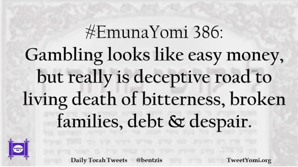 #EmunaYomi 386: Gambling looks like easy money, but really is deceptive road to living death of bitterness, broken families, debt & despair.