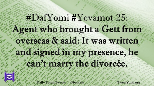 DafYomi, Yevamot #DafYomi #Yevamot 25 Date: April 3, 2022Author: ysspitz #DafYomi #Yevamot 25: Agent who brought a Gett from overseas & said: It was written and signed in my presence, he can’t marry the divorcée. Share this: Share on X (Opens in new window) X Share on Facebook (Opens in new window) Facebook Like Loading... Related