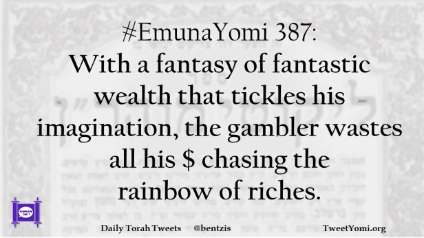 #EmunaYomi 387: With a fantasy of fantastic wealth that tickles his imagination, the gambler wastes all his $ chasing the rainbow of riches.