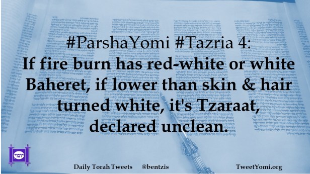 #ParshaYomi #Tazria 4: If fire burn has red-white or white Baheret, if lower than skin & hair turned white, it’s Tzaraat, declared unclean.