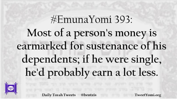 #EmunaYomi 393: Most of a person’s money is earmarked for sustenance of his dependents; if he were single, he’d probably earn a lot less.