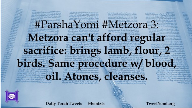#ParshaYomi #Metzora 3: Metzora can’t afford regular sacrifice: brings lamb, flour, 2 birds. Same procedure w/ blood, oil. Atones, cleanses.