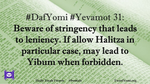 DafYomi, Yevamot #DafYomi #Yevamot 31 Date: April 7, 2022Author: ysspitz #DafYomi #Yevamot 31: Beware of stringency that leads to leniency. If allow Halitza in particular case, may lead to Yibum when forbidden. Share this: Share on X (Opens in new window) X Share on Facebook (Opens in new window) Facebook Like Loading... Related