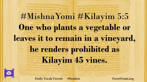 #MishnaYomi #Kilayim 5:5 One who plants a vegetable or leaves it to remain in a vineyard, he renders prohibited as Kilayim 45 vines.