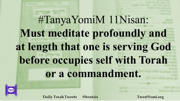 #TanyaYomiM 11Nisan: Must meditate profoundly and at length that one is serving God before occupies self with Torah or a commandment.