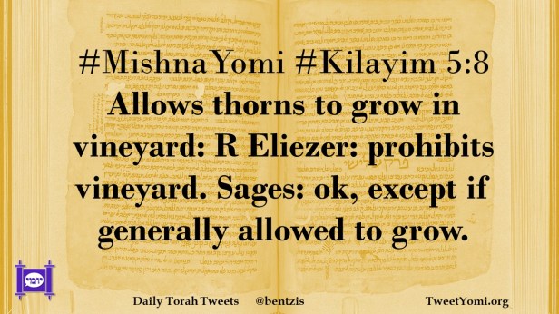 #MishnaYomi #Kilayim 5:8 Allows thorns to grow in vineyard: R Eliezer: prohibits vineyard. Sages: ok, except if generally allowed to grow.