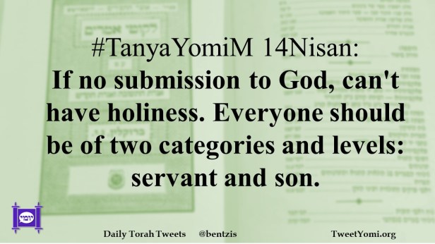 #TanyaYomiM 14Nisan: If no submission to God, can’t have holiness. Everyone should be of two categories and levels: servant and son.