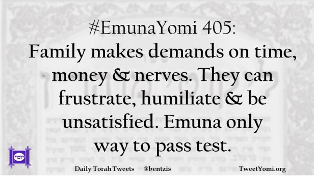 #EmunaYomi 405: Family makes demands on time, money & nerves. They can frustrate, humiliate & be unsatisfied. Emuna only way to pass test.