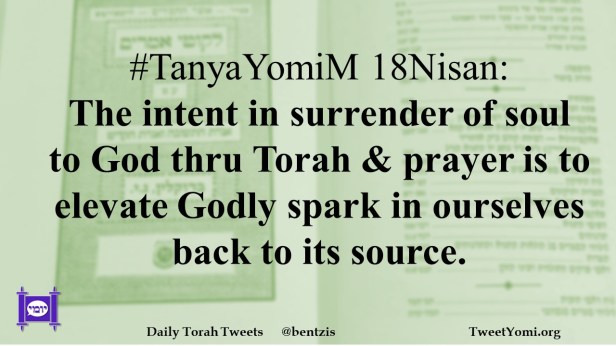 #TanyaYomiM 18Nisan: The intent in surrender of soul to God thru Torah & prayer is to elevate Godly spark in ourselves back to its source.