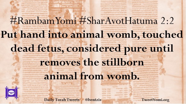 #RambamYomi #SharAvotHatuma 2:2 Put hand into animal womb, touched dead fetus, considered pure until removes the stillborn animal from womb.