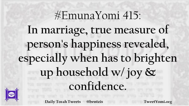 #EmunaYomi 415: In marriage, true measure of person’s happiness revealed, especially when has to brighten up household w/ joy & confidence.