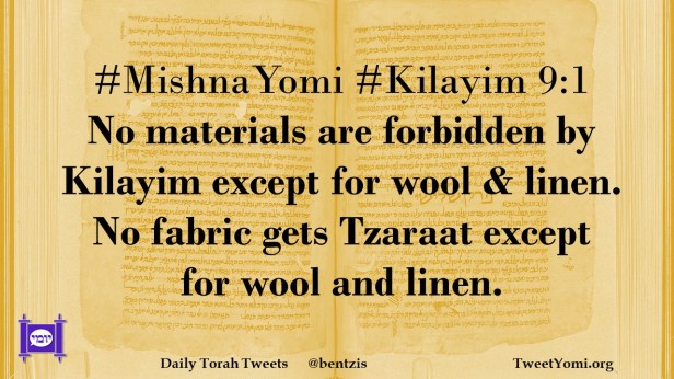 #MishnaYomi #Kilayim 9:1 No materials are forbidden by Kilayim except for wool & linen. No fabric gets Tzaraat except for wool and linen.