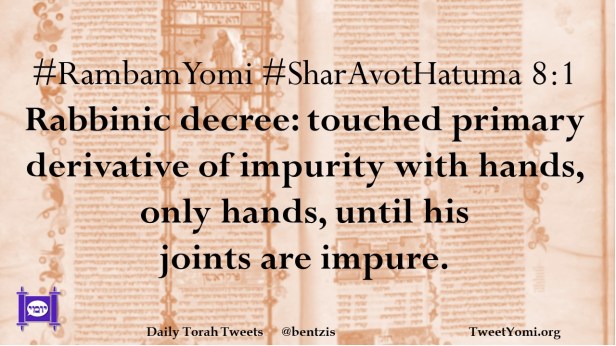 #RambamYomi #SharAvotHatuma 8:1 Rabbinic decree: touched primary derivative of impurity with hands, only hands, until his joints are impure.