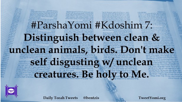 #ParshaYomi #Kdoshim 7: Distinguish between clean & unclean animals, birds. Don’t make self disgusting w/ unclean creatures. Be holy to Me.