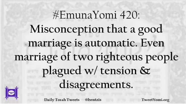#EmunaYomi 420: Misconception that a good marriage is automatic. Even marriage of two righteous people plagued w/ tension & disagreements.