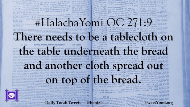 #HalachaYomi OC 271:9 There needs to be a tablecloth on the table underneath the bread and another cloth spread out on top of the bread.