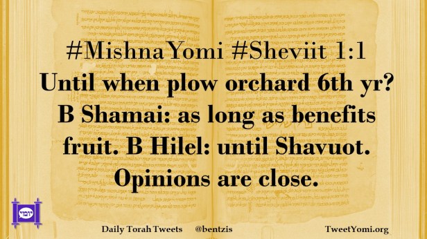 #MishnaYomi #Sheviit 1:1 Until when plow orchard 6th yr? B Shamai: as long as benefits fruit. B Hilel: until Shavuot. Opinions are close.