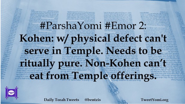 #ParshaYomi #Emor 2: Kohen: w/ physical defect can’t serve in Temple. Needs to be ritually pure. Non-Kohen can’t eat from Temple offerings.