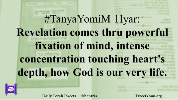 #TanyaYomiM 1Iyar: Revelation comes thru powerful fixation of mind, intense concentration touching heart’s depth, how God is our very life.