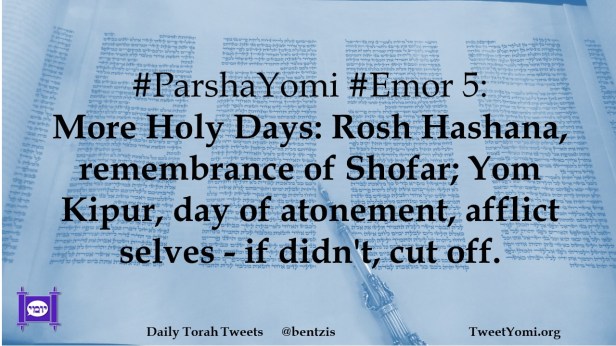 #ParshaYomi #Emor 5: More Holy Days: Rosh Hashana, remembrance of Shofar; Yom Kipur, day of atonement, afflict selves – if didn’t, cut off.