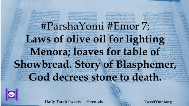 #ParshaYomi #Emor 7: Laws of olive oil for lighting Menora; loaves for table of Showbread. Story of Blasphemer, God decrees stone to death.