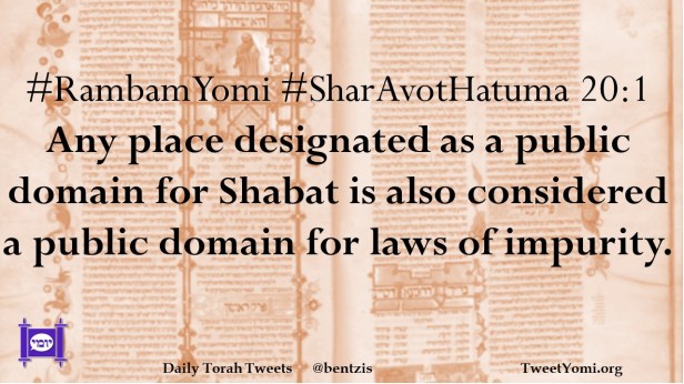 #RambamYomi #SharAvotHatuma 20:1 Any place designated as a public domain for Shabat is also considered a public domain for laws of impurity.