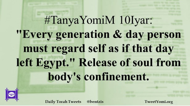 #TanyaYomiM 10Iyar: “Every generation & day person must regard self as if that day left Egypt.” Release of soul from body’s confinement.