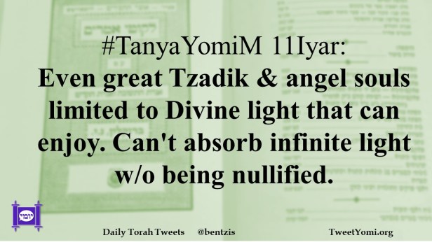 #TanyaYomiM 11Iyar: Even great Tzadik & angel souls limited to Divine light that can enjoy. Can’t absorb infinite light w/o being nullified.