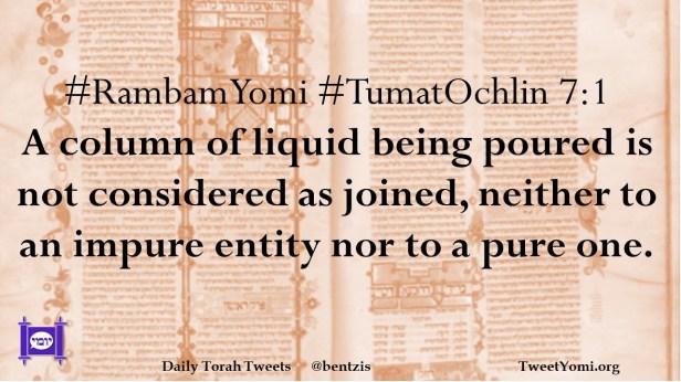 #RambamYomi #TumatOchlin 7:1 A column of liquid being poured is not considered as joined, neither to an impure entity nor to a pure one.