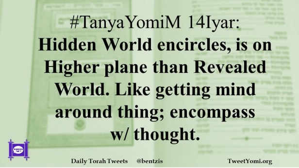 #TanyaYomiM 14Iyar: Hidden World encircles, is on Higher plane than Revealed World. Like getting mind around thing; encompass w/ thought.