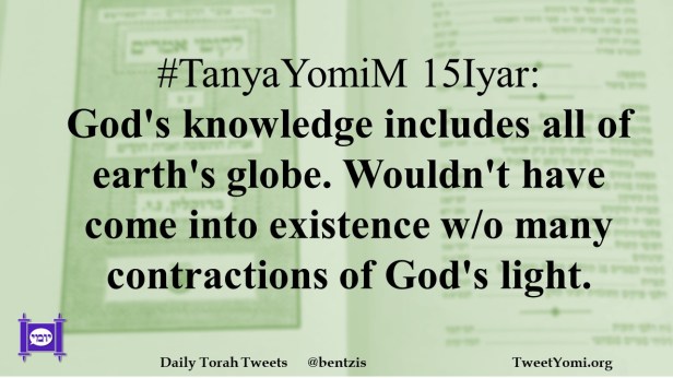 #TanyaYomiM 15Iyar: God’s knowledge includes all of earth’s globe. Wouldn’t have come into existence w/o many contractions of God’s light.