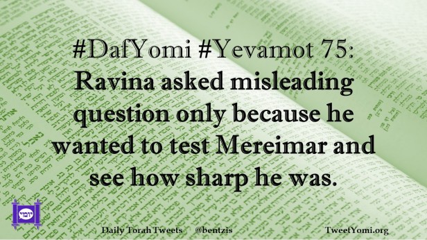 DafYomi, Yevamot #DafYomi #Yevamot 75 Date: June 7, 2022Author: ysspitz #DafYomi #Yevamot 75: Ravina asked misleading question only because he wanted to test Mereimar and see how sharp he was. Share this: Share on X (Opens in new window) X Share on Facebook (Opens in new window) Facebook Like Loading... Related