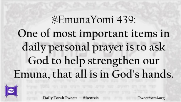 #EmunaYomi 439: One of most important items in daily personal prayer is to ask God to help strengthen our Emuna, that all is in God’s hands.
