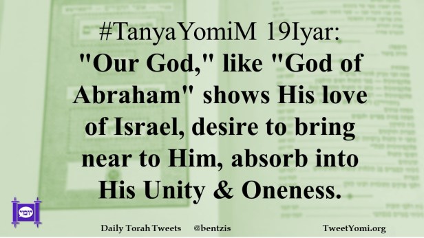 #TanyaYomiM 19Iyar: “Our God,” like “God of Abraham” shows His love of Israel, desire to bring near to Him, absorb into His Unity & Oneness.