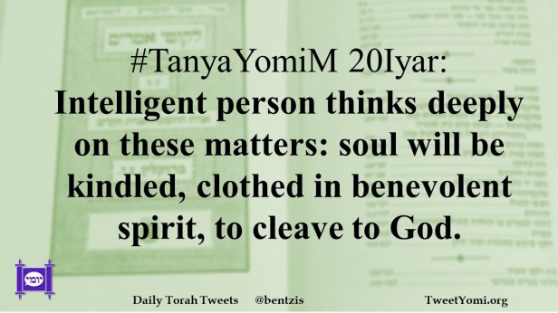 #TanyaYomiM 20Iyar: Intelligent person thinks deeply on these matters: soul will be kindled, clothed in benevolent spirit, to cleave to God.