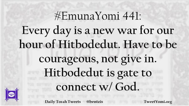#EmunaYomi 441: Every day is a new war for our hour of Hitbodedut. Have to be courageous, not give in. Hitbodedut is gate to connect w/ God.