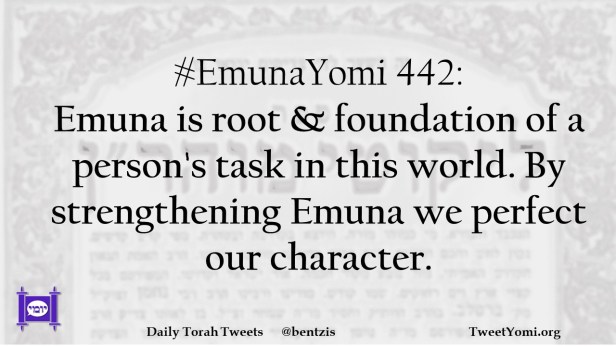 #EmunaYomi 442: Emuna is root & foundation of a person’s task in this world. By strengthening Emuna we perfect our character.
