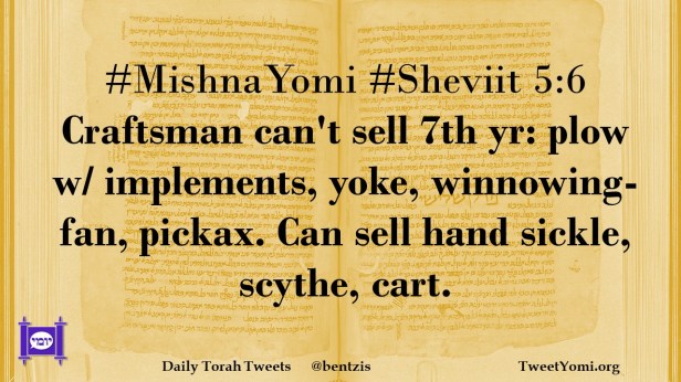 #MishnaYomi #Sheviit 5:6 Craftsman can’t sell 7th yr: plow w/ implements, yoke, winnowing-fan, pickax. Can sell hand sickle, scythe, cart.