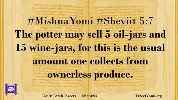 #MishnaYomi #Sheviit 5:7 The potter may sell 5 oil-jars and 15 wine-jars, for this is the usual amount one collects from ownerless produce.