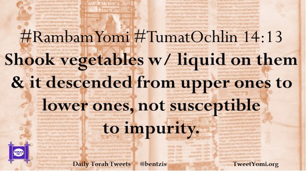 #RambamYomi #TumatOchlin 14:13 Shook vegetables w/ liquid on them & it descended from upper ones to lower ones, not susceptible to impurity.