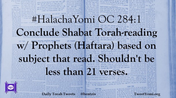 #HalachaYomi OC 284:1 Conclude Shabat Torah-reading w/ Prophets (Haftara) based on subject that read. Shouldn’t be less than 21 verses.