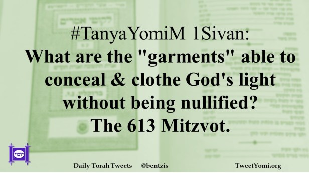 TanyaYomiM #TanyaYomiM 1Sivan Date: June 13, 2022Author: ysspitz #TanyaYomiM 1Sivan: What are the “garments” able to conceal & clothe God’s light without being nullified? The 613 Mitzvot. Share this: Share on X (Opens in new window) X Share on Facebook (Opens in new window) Facebook Like Loading... Related