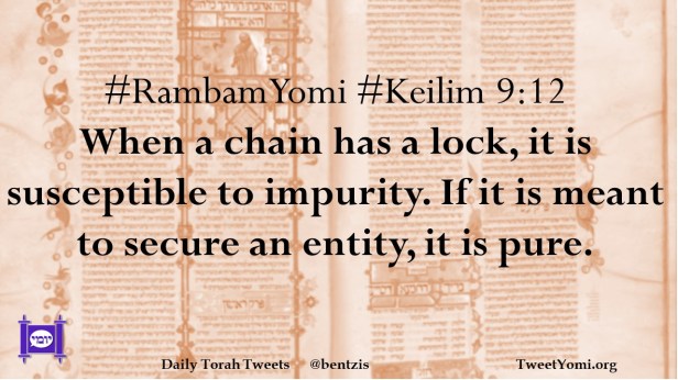 #RambamYomi #Keilim 9:12 When a chain has a lock, it is susceptible to impurity. If it is meant to secure an entity, it is pure.