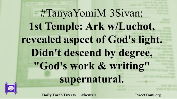 #TanyaYomiM 3Sivan: 1st Temple: Ark w/Luchot, revealed aspect of God’s light. Didn’t descend by degree, “God’s work & writing” supernatural.
