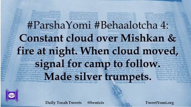 #ParshaYomi #Behaalotcha 4: Constant cloud over Mishkan & fire at night. When cloud moved, signal for camp to follow. Made silver trumpets.